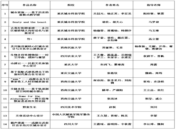 第一届“山地筑境”杯成渝地区高校建筑大类专业本科课程设计竞赛入围奖获奖名单正式公布!经过网络评审专家委员会严谨、负责、公正评审,综合考量,从此前确定的77份入选作品中再次评选,最终确定此轮40份入围作品。现将获得入围的作品名单公布如下: