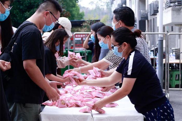 在中秋佳节来临之际,为了让来自全国四面八方的同学们在祥和愉悦的节日氛围中欢度佳节,感受到家的温暖,学校安排我们为每一位返校同学发放中秋节礼物——中秋月饼,为同学们送上中秋节日的祝福。学校领导还亲自到各寝室楼下为同学们派发月饼。同学们按照宿舍号有序地领取月饼,发放现场井然有序,同学们都挺开心的。看着大家开心的模样,身为志愿者,我们也觉得暖洋洋的。虽然今年不能在家过中秋,但学校让我们这些远在他乡的学子也体会到了不一样的温暖。