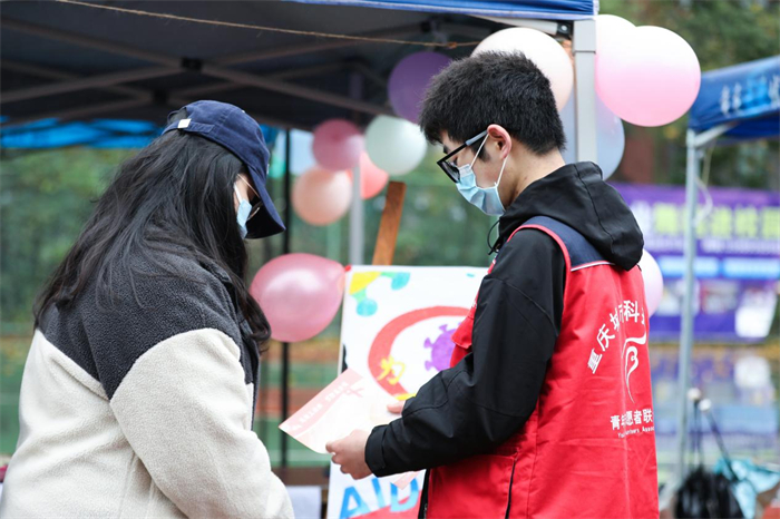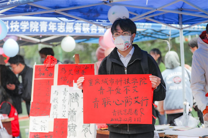 12月1日,重庆城市科技学院联合永川区集嫒医院在校园开展“‘青年爱不艾’——‘青联心,防艾行’”主题宣教活动。