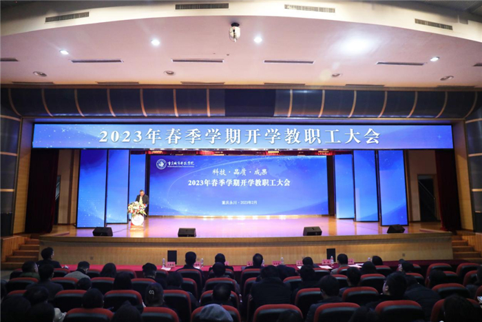 新岁序开,共赴新程。2月15日下午,重庆城市科技学院于第一学术报告厅隆重召开2023年春季学期开学教职工大会,对2023年的各项工作进行全面部署和动员。学校领导班子与全体教职员工参加大会,会议由党委书记、政府督导专员王银峰主持。