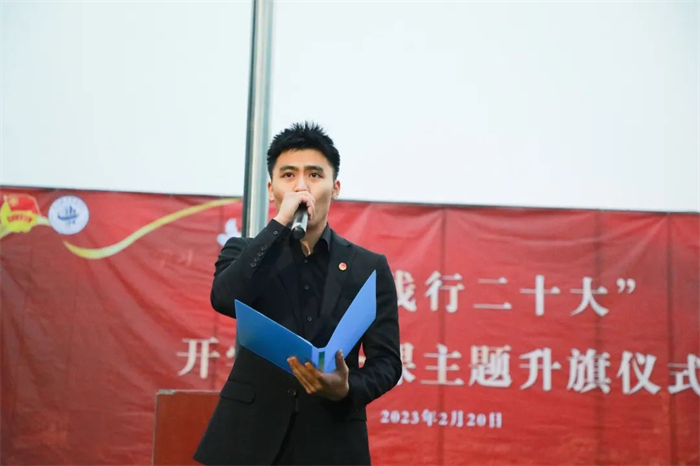 吴逸凡同学作为学生代表上台发言。号召全体学子在春暖花开之际,与崭新的自己相遇,用笔尖记录校园美好,尽情挥洒青春与汗水,感受色彩缤纷的社团文化,去找寻独属于自己的城科“心”生活,以奋发有为的姿态献礼二十大。