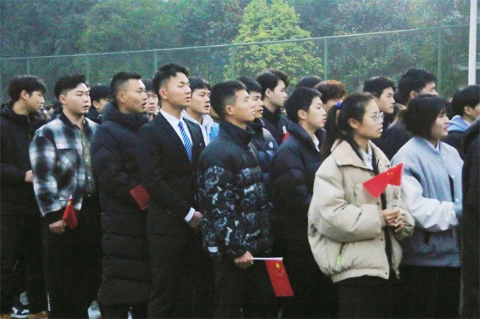 活动伊始,伴随着慷慨激昂的国歌,在城科学子整齐的注目礼下,五星红旗冉冉升起,迎风飘扬。