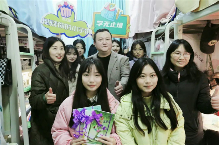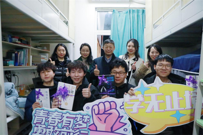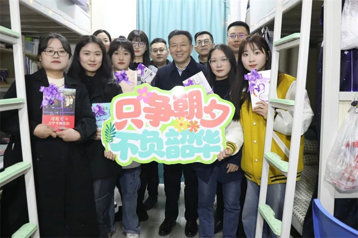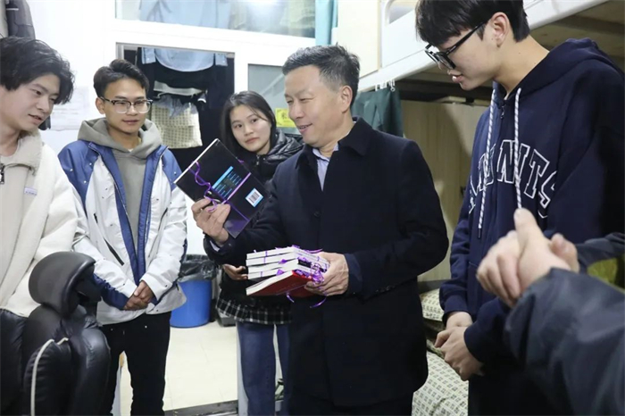 晚上,校领导班子一行来到各二级学院学生宿舍楼,与同学们进行深入交谈,送去学校的关怀与问候。他们亲切询问了同学们的寒假见闻、返校生活、新学期开学准备等情况,认真聆听同学们的感受和想法,送上了学校为大家准备的精美书籍,并叮嘱同学们注意校园安全、关注健康状况,尽快调整生活作息,进入学习状态,以更加饱满的精神面貌迎接新学期。刘学民理事长对同学们提出了殷切的期望,希望他们尽快适应新学期生活,培养独立自主的意识,做好学业规划,明确目标、拼搏进取、不负韶华。同时,也叮嘱各二级学院给予学生们更多关心关怀,了解学习生活需求,提供指导和帮助。走访过程中,不少学生表示真切感受到了来自学校大家庭的温暖、鼓励与关怀,将正式开启新学期新征程。