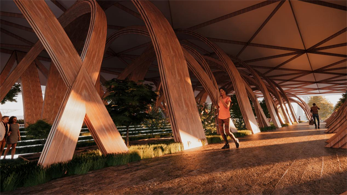 mu下交通整体设计主要将“负碳”排放特点的木结构应用于结构和外观,将重型木结构与建筑创造性地融合在一起,展现出建筑的空间美、形象美、生态美……