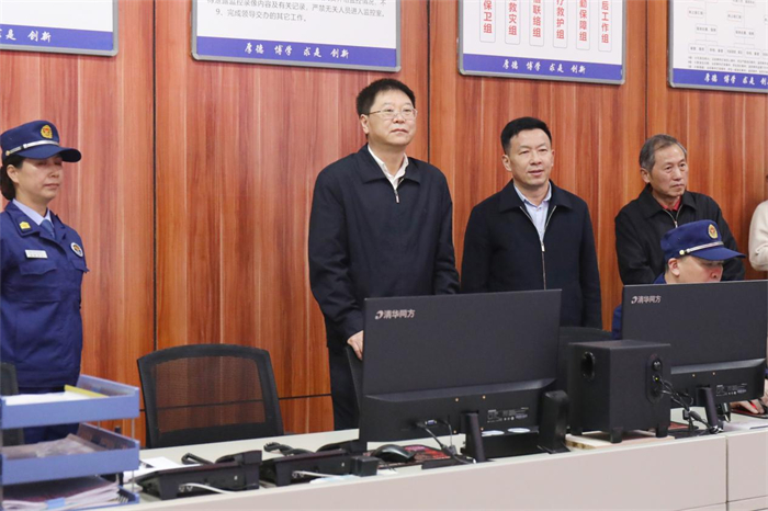 在主教前广场,刘学民首先向调研组一行介绍了学校的总体规划和基本情况,并陪同参观了学校的消防应急指挥中心。在消防应急指挥中心,黄政听取了校内安防系统的详细汇报,并对重庆城科监控覆盖、联勤联动、高效便捷的校园安防智能管理体系表示肯定。