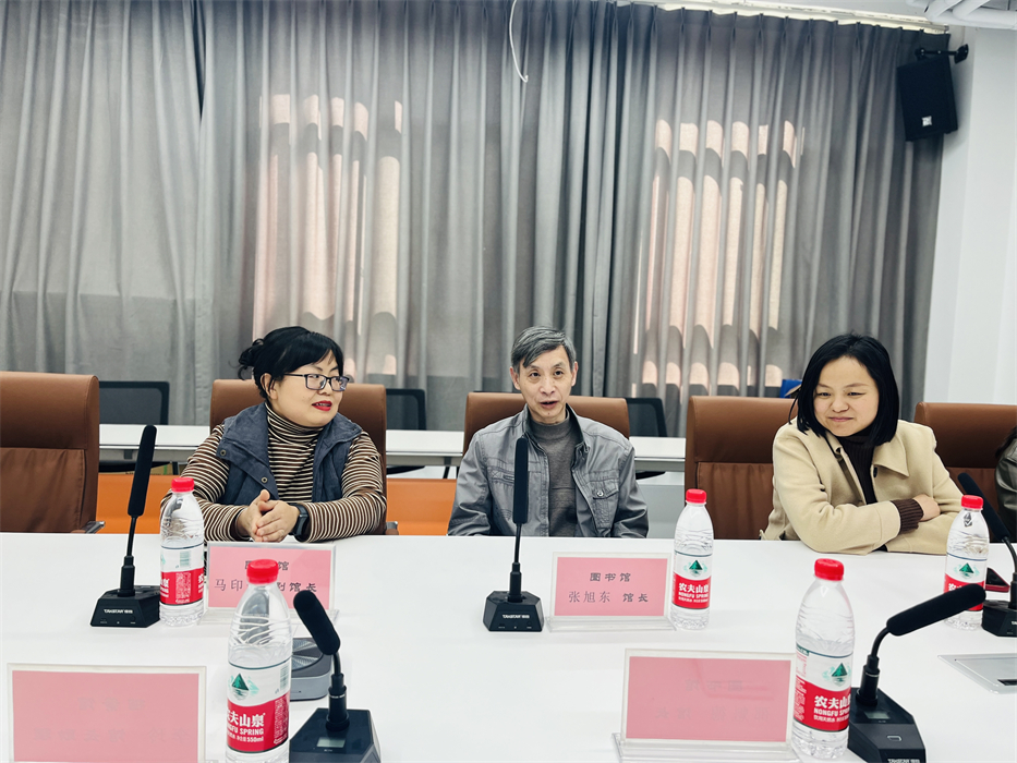 首先,张旭东馆长对科创学院图书馆邵馆长一行的到来表示热烈的欢迎。马印普副馆长就学校图书馆馆情、读者服务、学生馆员管理等各方面工作进行了详细地介绍。随后,双方就各自在图书馆资源建设、阅读推广、图书馆课程实施等方面展开了深入广泛的交流。邵魁德馆长介绍了重庆科创职业学院图书馆的相关情况。学校图书馆人员对来宾的提问进行了细致的解答。