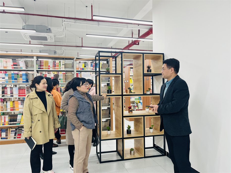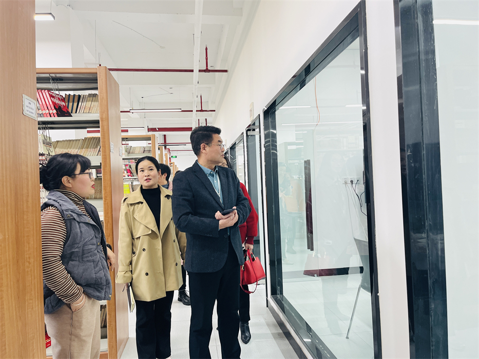 座谈会结束后,马印普副馆长带领邵馆长一行先后参观了学校图书馆上新的瀑布流电子阅读机、朗读亭、电子阅读本等设施设备;邵馆长一行实地调研了学校图书馆研讨室、考研自习室等相关情况。