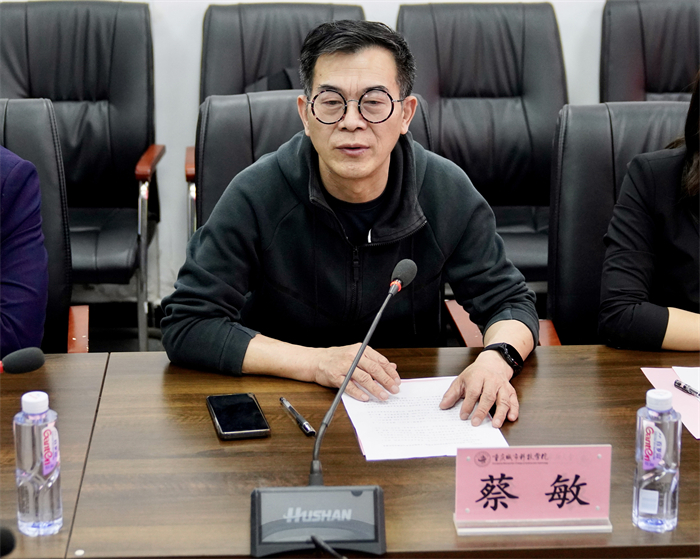 蔡敏对艺术与传媒学院现有专业设置、师资队伍、课程建设、教学创新、教研科研等情况进行介绍。对于双方主要交流的“网络与新媒体”专业,蔡敏表示这个专业是文学、艺术以及科学技术相结合的交叉学科。