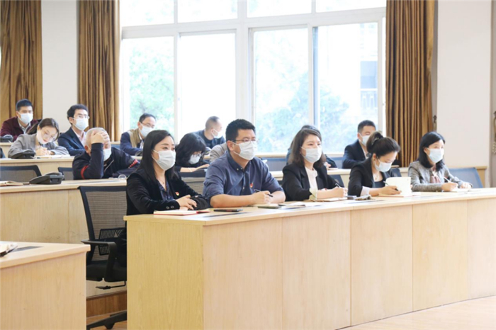 市委教育工委巡回指导二组组员招吉韬,学校全体党委委员,中层干部,各党总支委员、师生党员代表参加会议。(传媒中心 王正君/编辑)