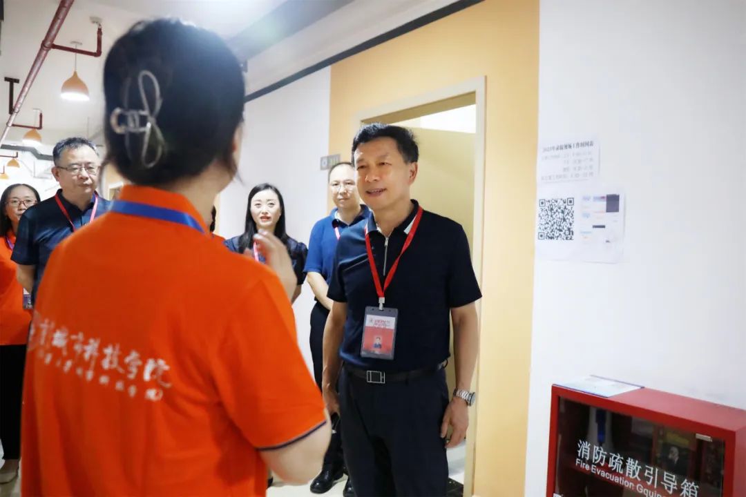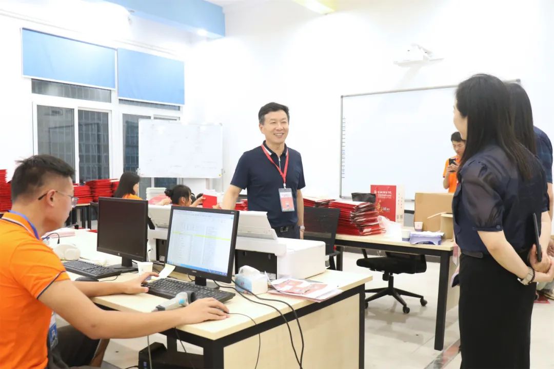校领导一行与工作人员亲切交谈,听取了招生工作人员关于我校今年招生录取工作情况的汇报,详细询问了招生录取进度、录取工作流程、录取通知书寄送等情况,现场了解了专业录取、阅档审核等操作流程,并认真查看了招生现场的工作环境,详细了解录取现场设备保障和后勤服务等情况,对全体工作人员在暑假期间坚守工作岗位、辛勤付出表示慰问和感谢。