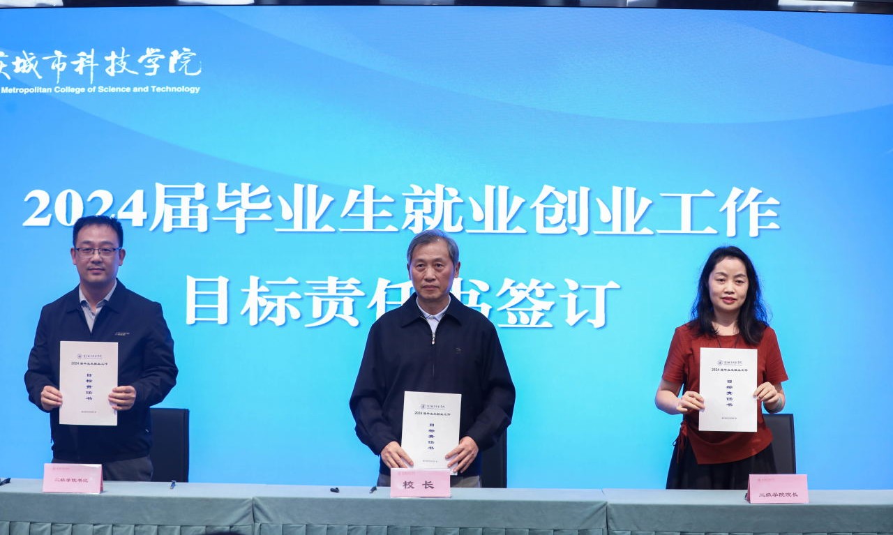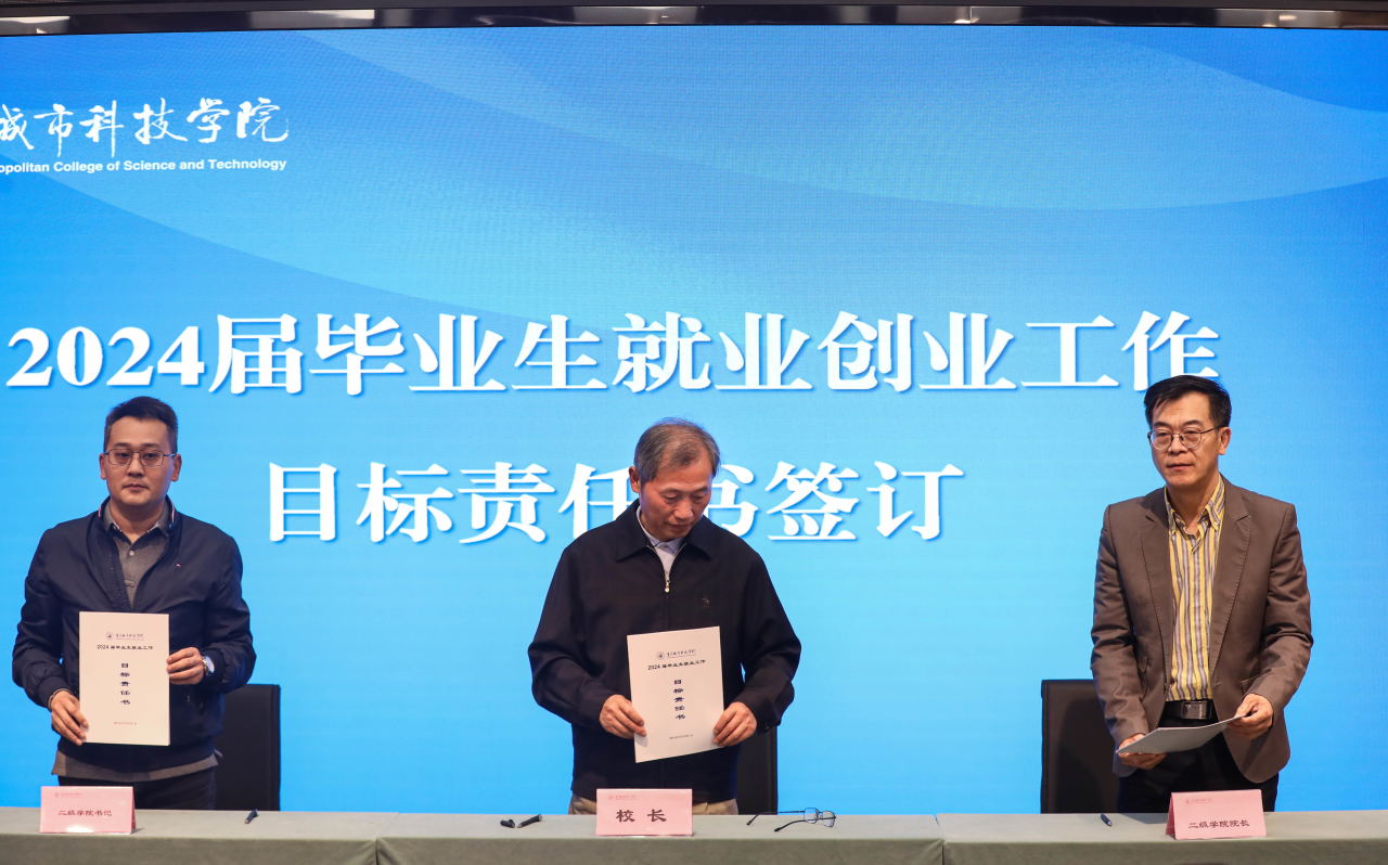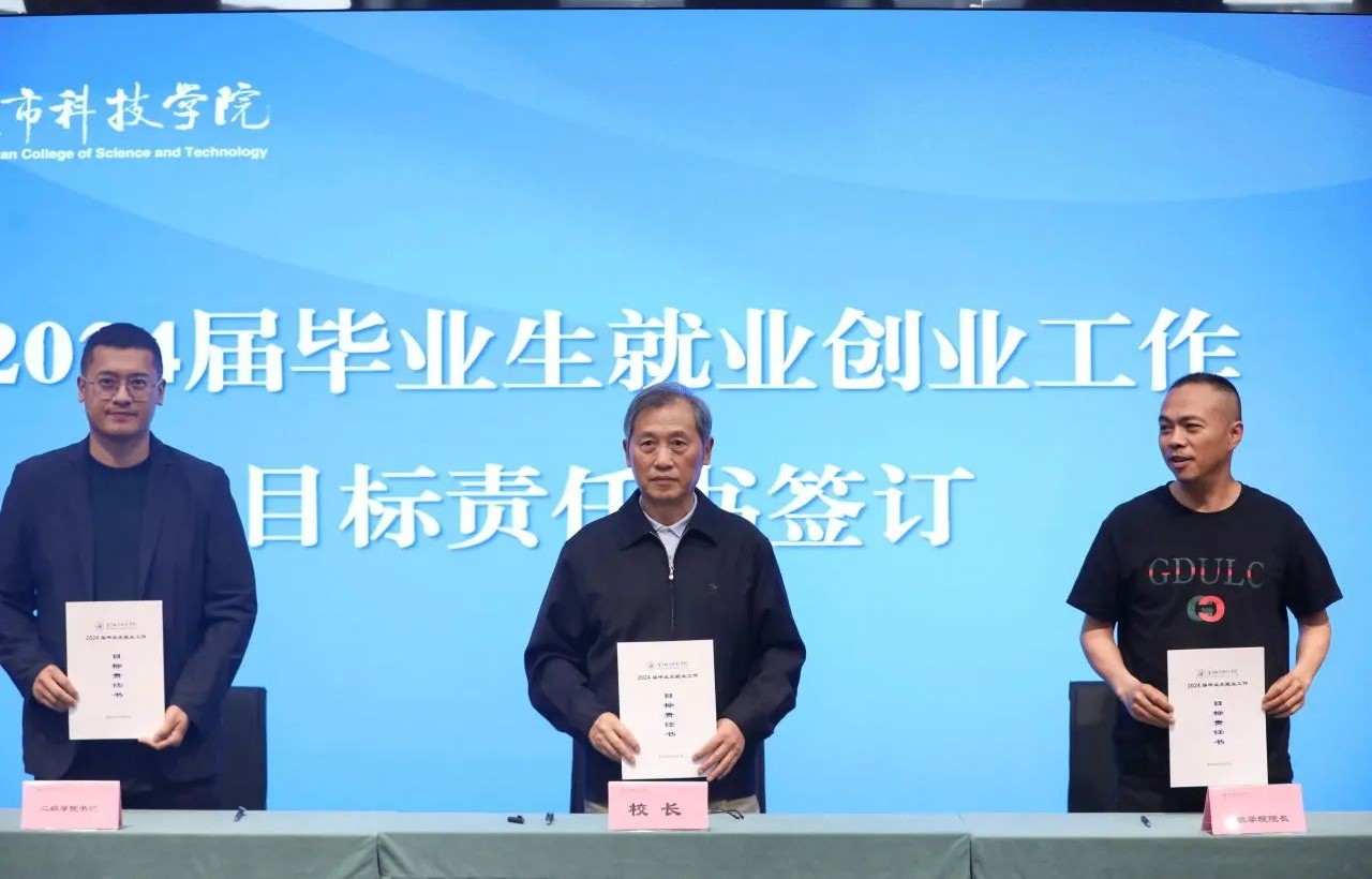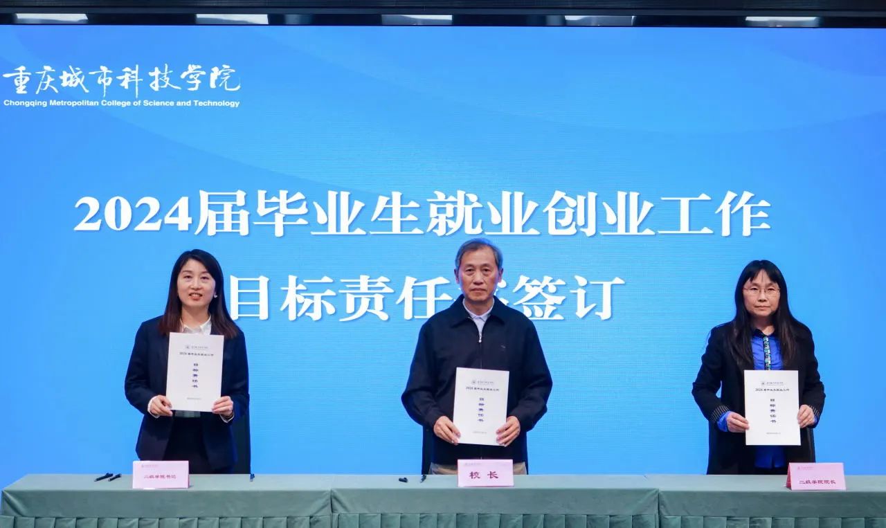 校长黄宗明与各二级学院院长、党总支(副)书记签订2024届毕业生就业目标责任书,深入落实就业工作“一把手”工程,进一步明确工作目标,压实就业创业工作责任。