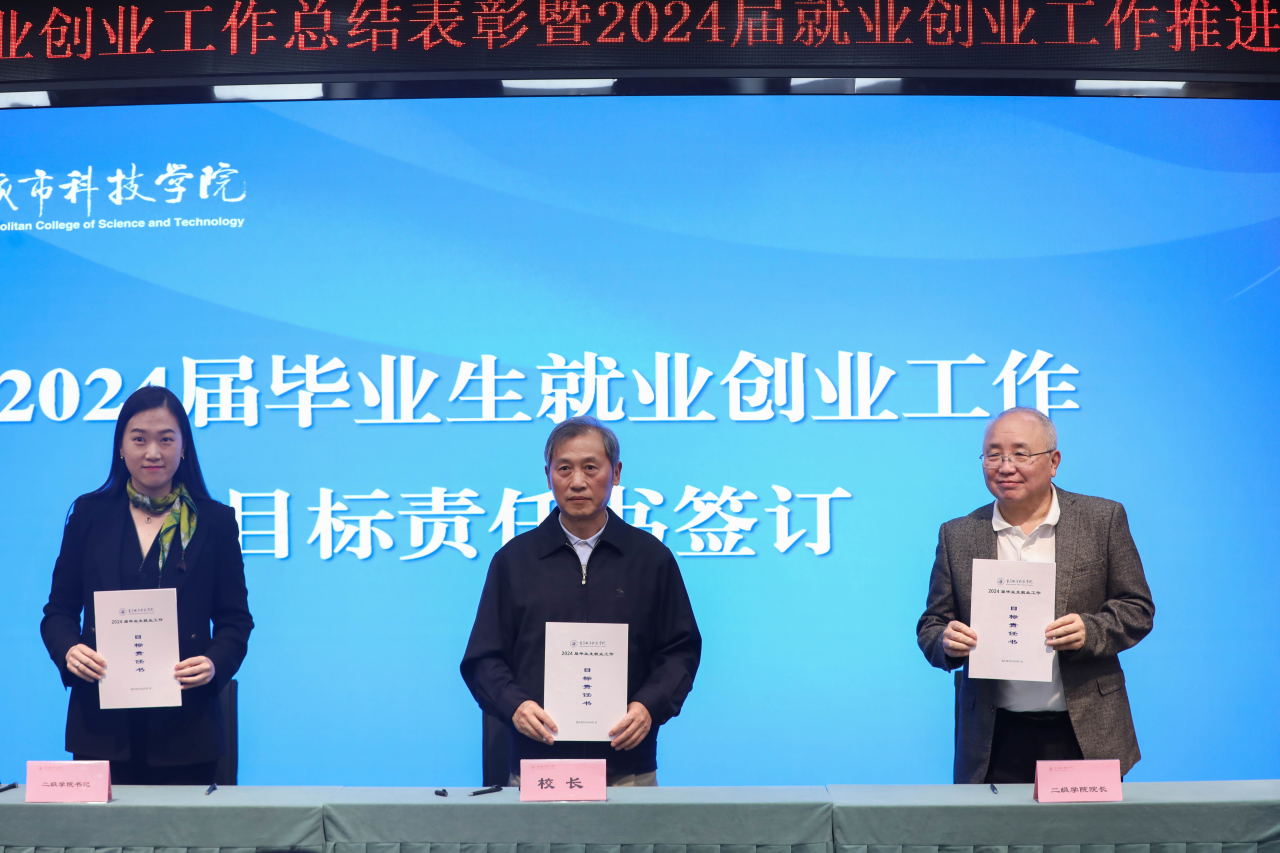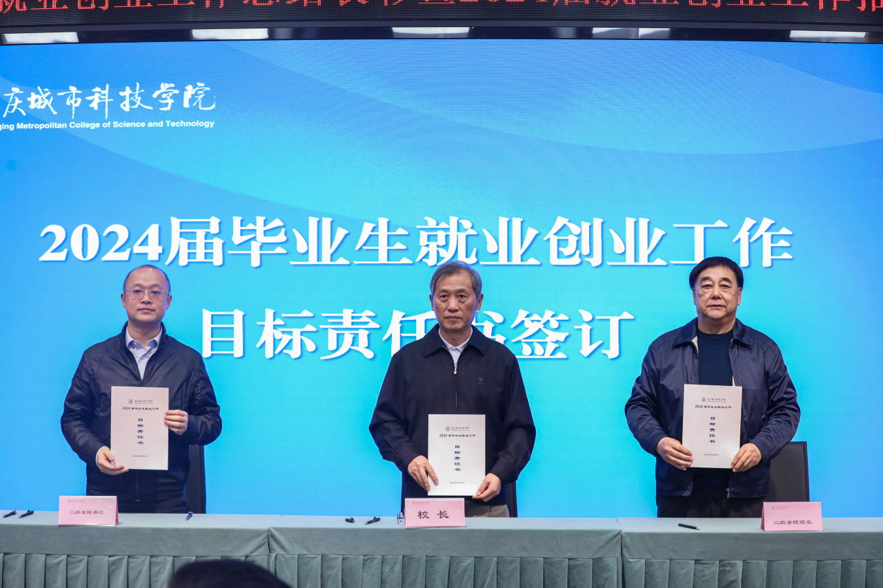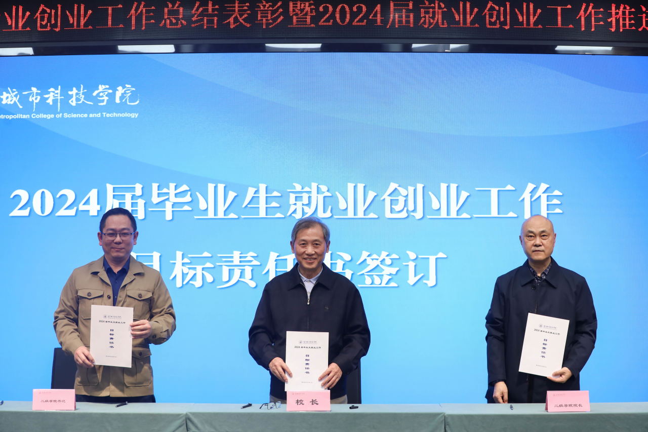 校长黄宗明与各二级学院院长、党总支(副)书记签订2024届毕业生就业目标责任书,深入落实就业工作“一把手”工程,进一步明确工作目标,压实就业创业工作责任。