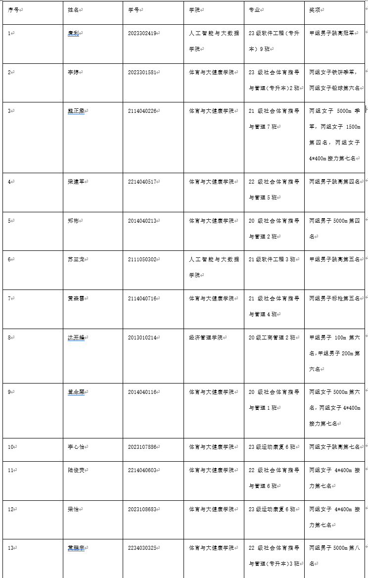 学校田径队由体育与大健康学院老师田汜明、杨菲、陈睿精心指导,经过长期的专业素质强化训练,最终荣获女子丙组团体总分第六名、男子甲组跳高冠军、女子丙组铁饼季军、女子丙组5000m季军等多项荣誉,体现了学校在体育教育方面的实力。这些成绩的取得,离不开学校各级领导的关心和支持,以及田径队师生的共同努力和付出。