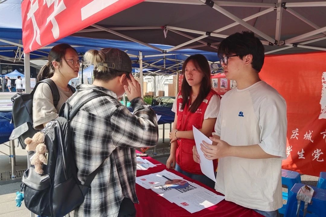 9月23日-25日永川校区于实验楼对面,巴南校区于汇百味食堂前广场举行本次纳新宣传报名。纳新现场,中心成员们热情地向过往的同学介绍中心的宗旨、组织架构及各部门职能,详细解答同学们的疑问,展现了大学生党建工作中心积极向上的精神风貌和严谨务实的工作态度。