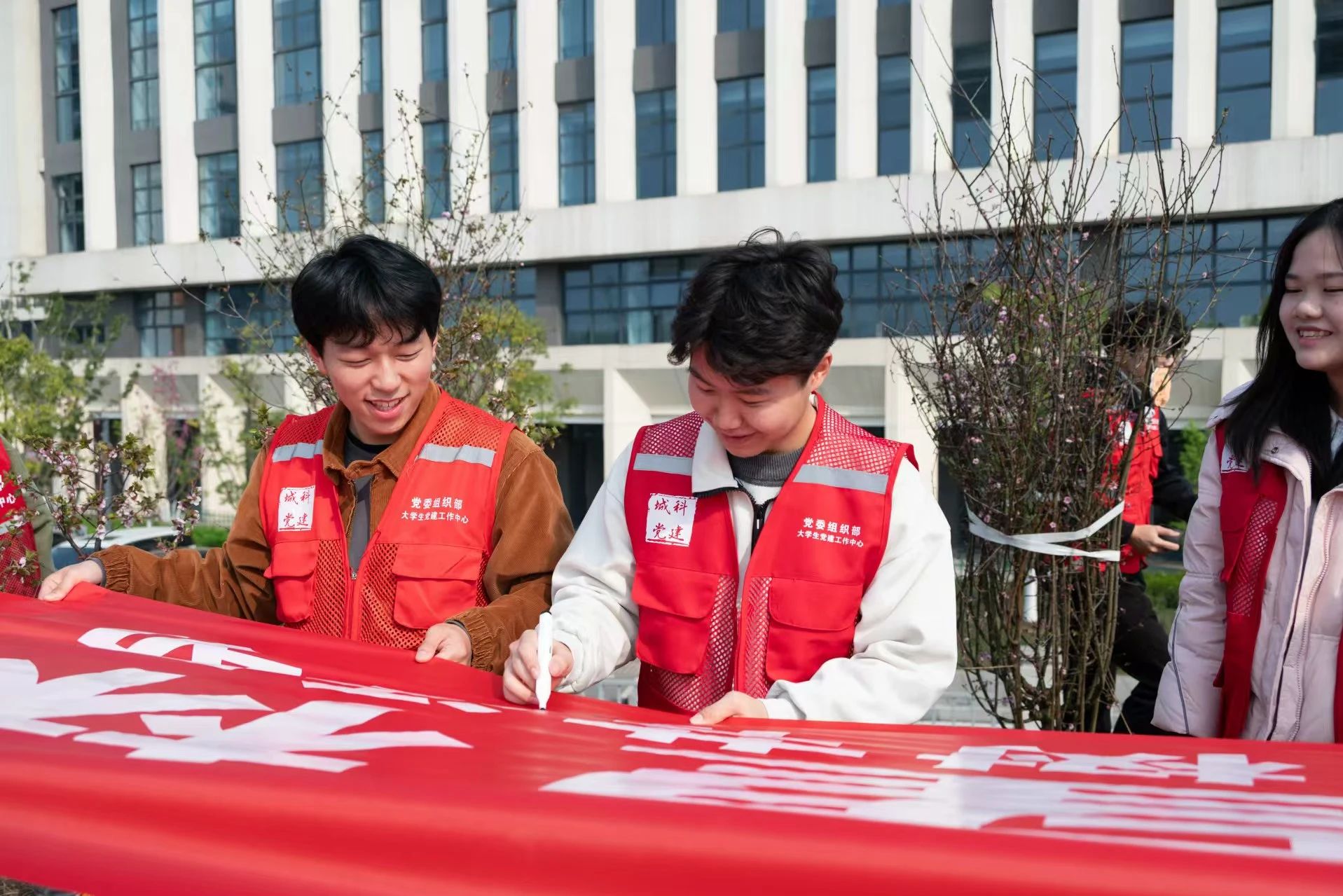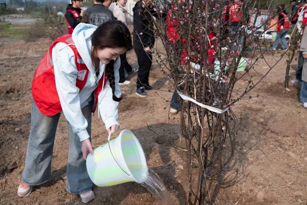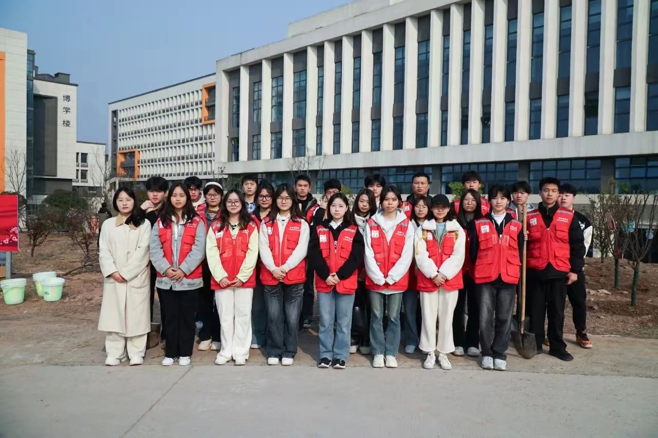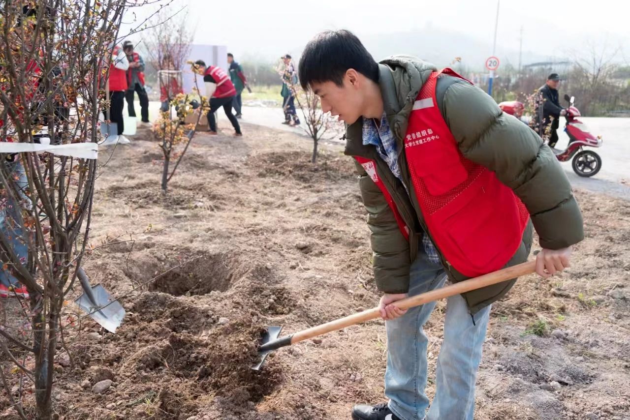 在这充满生机与希望的季节里,为深入贯彻落实党的“推动绿色发展,促进人与自然和谐共生”的方针,牢固树立和践行绿水青山就是金山银山的理念。同时,助力巴南校区的校园生态环境建设,营造生态环保的校园氛围。大学生党建工作中心于2025年 3 月 12 日,在巴南校区举办了主题为“党建引领添新绿,青春共植希望林”的植树节活动。中心指导老师马煦玥以及部分中心成员参与本次活动。
