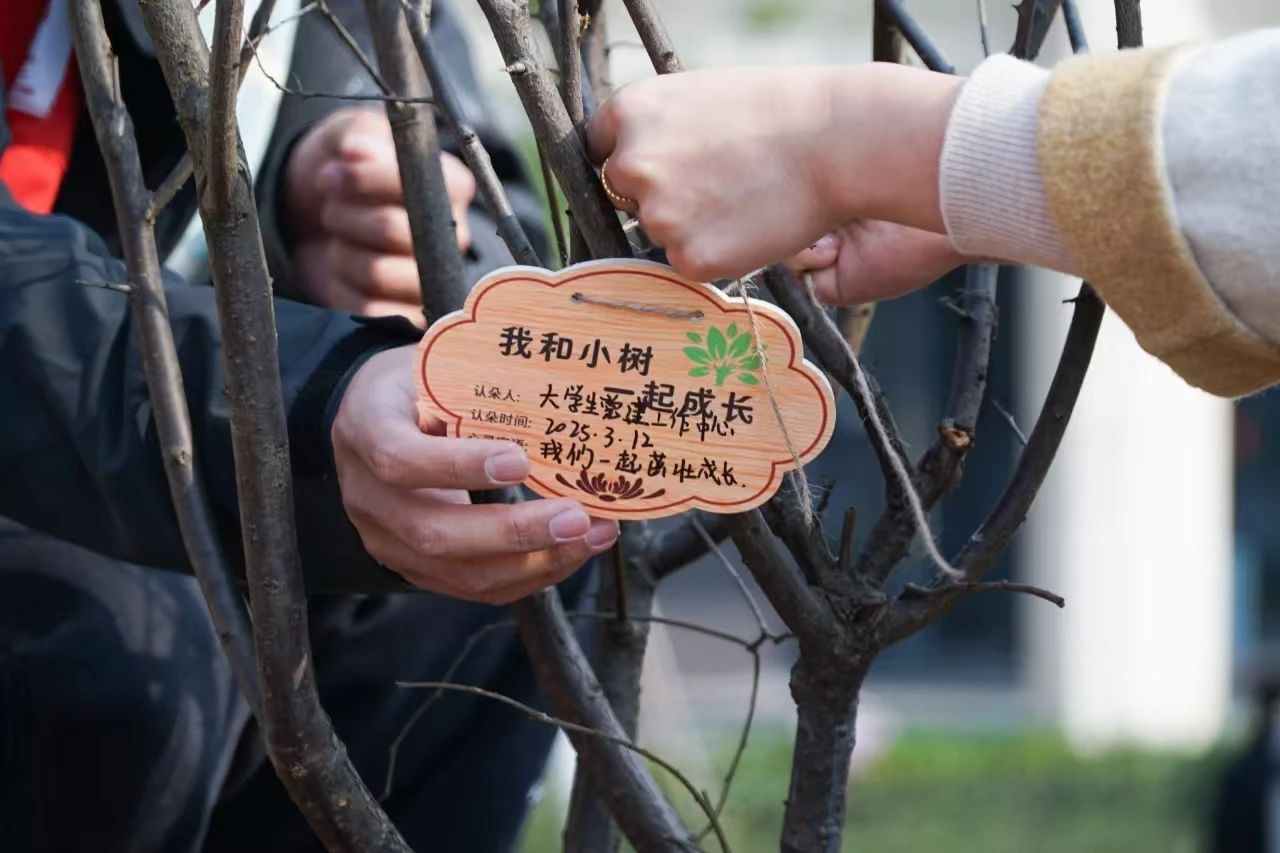 接着,各部门为树苗悬挂定制纪念牌,标注树种信息与种植日期,为校园留下中心活动的独特印记。经过几个小时的辛勤劳动,新栽种的树苗迎风挺立,为初春的大地增添了一抹新绿。