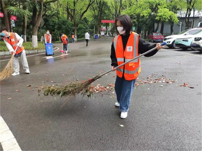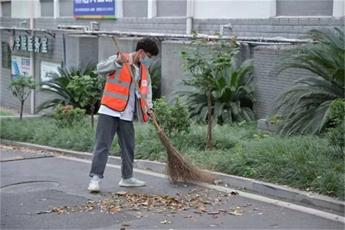 活动中,志愿者们不畏劳累,积极配合,形成合力,充分发挥不怕脏、不怕累的精神,忙碌而有序地对第一行政楼周围道路以及卫生死角进行全面清扫,全力清扫落叶垃圾,积极营造干净、整洁、文明的环境。