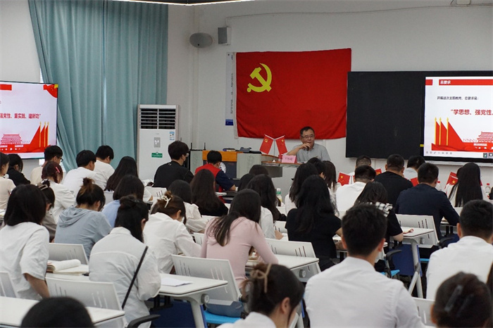 为深入开展学习贯彻习近平新时代中国特色社会主义思想主题教育,营造学习贯彻习近平新时代中国特色社会主义思想主题教育浓厚氛围,充分发挥党课教育引导作用,6月15日下午,重庆城市科技学院党委书记、政府督导专员王银峰在主教401讲授《学习贯彻习近平新时代中国特色社会主义思想》专题党课。建筑管理学院副院长龚洁,党总支副书记邓杰予,全体师生党员及党员发展对象参加此次专题党课学习。