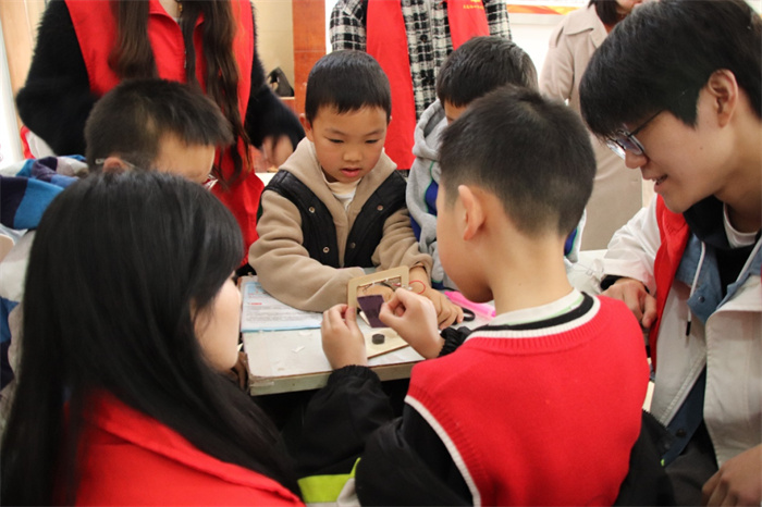 志愿者们用简洁生动的语言向社区小朋友们解释了三个科学小实验——平衡小车、电力秋千、自制小火山中包含的科学原理,通过讲解示范、现场体验的方式,一个个科普小实验在小朋友们面前展现,让孩子们零距离感受到科技的无限魅力,孩子们仔细观察、认真操作、积极讨论,享受探索乐趣。志愿者也纷纷表示能够有机会在志愿服务中发挥专业优势、在实践中不断提升自己,感到十分快乐,进一步增强了服务意识、坚定了学好专业知识的决心。