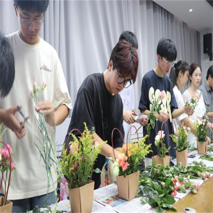 在现场,24级新生们结合花材的特点,从去叶片、剪花刺,到架构框架、选花材、配颜色,大家凭借各自对美的不同理解,使得原本普通的花草,历经修剪、层次搭配、点缀等步骤之后,变成色彩斑斓、独具匠心的花艺作品。随后,新生们手持各自精心制作的花艺作品前往老师办公室将花束递给每位敬爱的老师,伴随着同学们的祝福,老师们感受到了同学们真切的心意,开心地接过花束并用暖心的笑容和谆谆教诲回报这份深情厚谊。