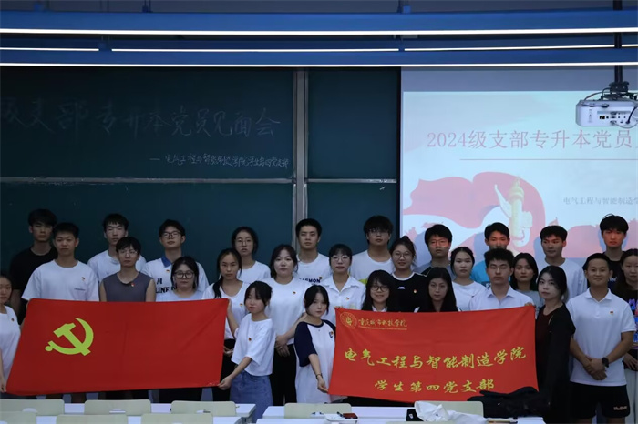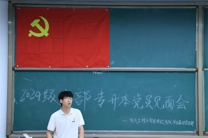 为加强新生党员之间的交流与沟通,促进党支部的凝聚力和战斗力,9月20日中午,电气工程与智能制造学院学生第四党支部于五教109召开了2024级专升本新生党员见面会,支部全体学生党员、24级专升本全体新生党员参会。本次会议由魏岩同志主持。