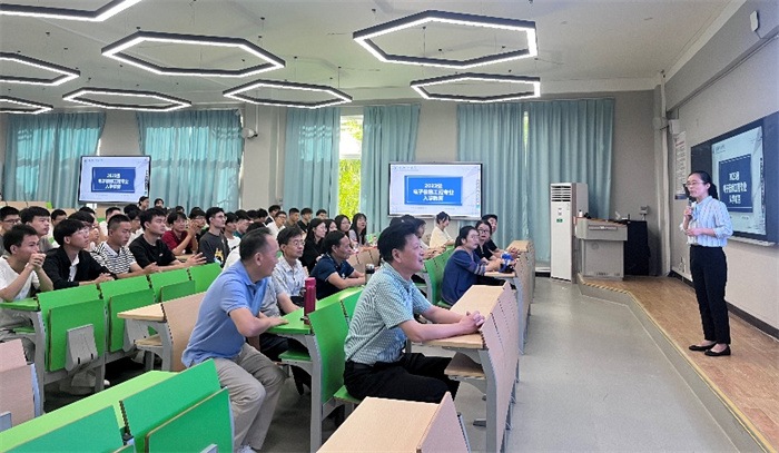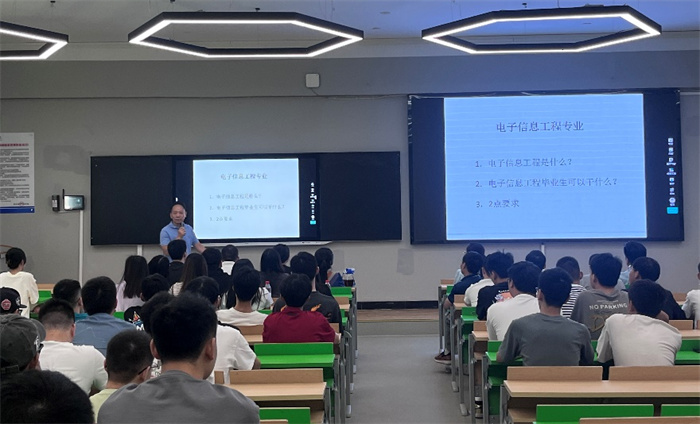 为帮助2023级电子信息工程(专升本)新生尽快适应重庆城市科技学院本科生活,适应学习生活环境,做好人生规划,2023年9月1日上午,电气工程与智能制造学院电子信息工程系在主教311教室开展了新生入学教育工作。学院常务副院长潘银松、电子信息工程系主任毛盼娣、唐治德教授及电子系全体教师出席活动,2023级全体电子信息工程(专升本)新生参与本次活动。