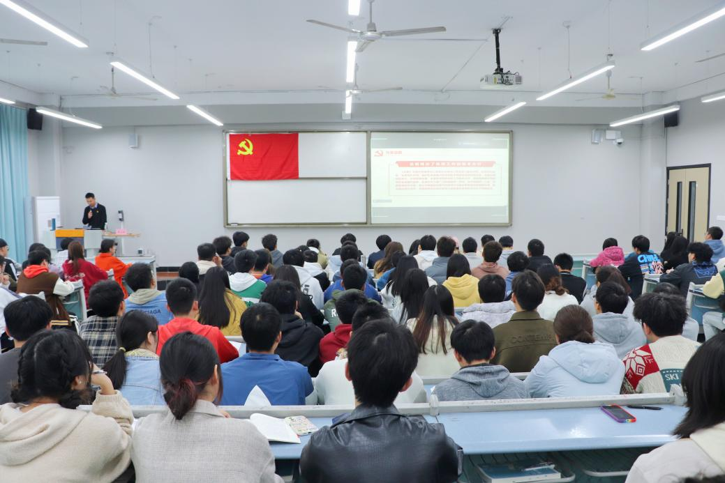 党章铭于心,党规践于行。课上,张玉林院长结合自身对党章的学习收获和体会,从党章概述、党章总纲、党章条文、“学习践行党章,争做合格党员”四个方面,对新修订的党章进行了专题解读。他指出,党章的丰富和完善充分体现了中国共产党百年奋斗取得的重大成就和历史经验,充分展现了中国共产党始终坚持与时俱进、开拓进取的精神面貌和以创新引领时代进步的责任担当,呼吁大家要珍惜党的指导思想的凝练成果,把党章真正作为加强党性修养的根本标注,在学习过程中务必做到政治信仰不变、政治立场不移、政治方向不偏,自觉地学习和维护党章,以实际行动践行党章内容,踔厉奋发、勇毅前行。