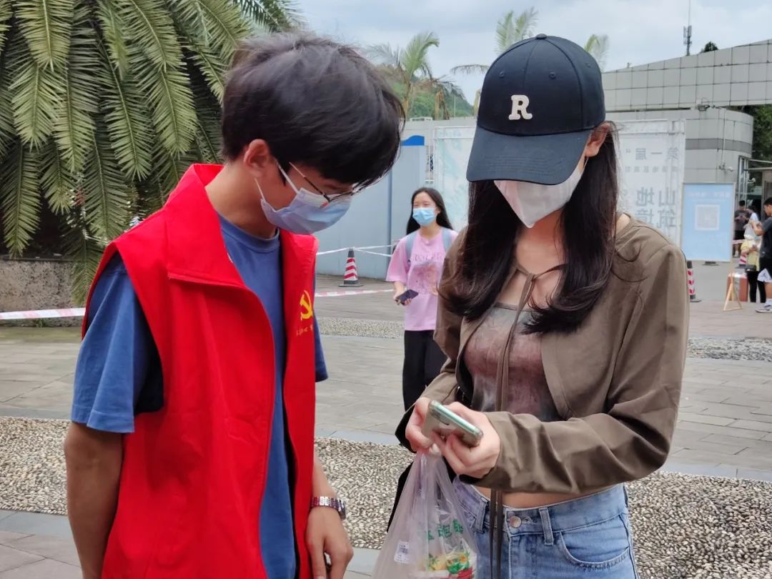 节后返校要注意,防护观念不松懈。志愿者们身穿红马甲,对返校同学进行行程卡、健康码的核验,指引同学们有序进入校园。在工作中,志愿者工作一丝不苟,分工明确,各项工作有条不紊,真正做到了外防输入、内防感染,为美丽校园树立起一道安全坚固的屏障。学院返校的同学们也主动配合志愿者工作,构筑出一道温暖且靓丽的红色风景线。
