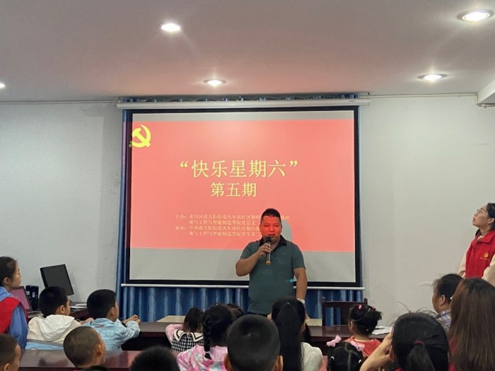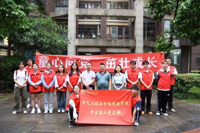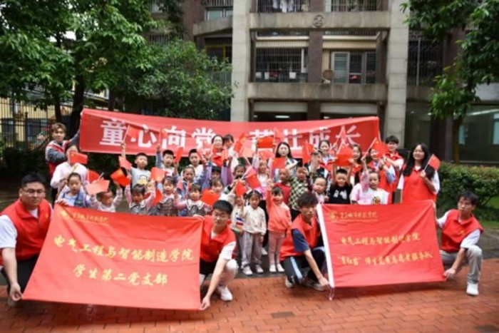 为深化中国梦和社会主义核心价值观教育,引导未成年人从小听党话、感党恩、跟党走,传承红色基因,赓续红色血脉。6月3日,电气工程与智能制造学院学生第二党支部组织“育红苗”师生党员志愿者服务队前往永川区南大街火车站社区开展“童心向党