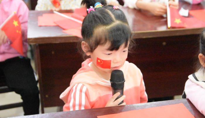 童心向党,党的故事我来讲。活动伊始,志愿者叶晶晶采用生动活泼,通俗易懂的形式,将主题教育、视频播放以及问答奖励相结合起来,向孩子们讲解了党的由来,国旗、党旗的构成以及其意义,调动了孩子们的思维踊跃性,初步培养幼儿热爱中国共产党的情感,推动党史学习教育走进校园,营造出良好的氛围,从而引导孩子们厚植爱国情怀。