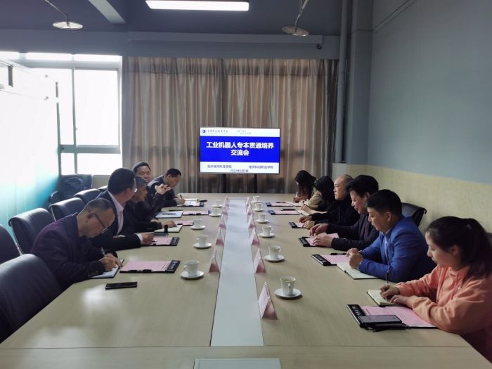 3月9日下午,重庆城市科技学院电气工程与智能制造学院院长陈进、常务副院长潘银松、机电教研室副主任李立成、教务处副处长杨明静一行前往重庆科创职业学院参加工业机器人专本贯通培养交流会。
