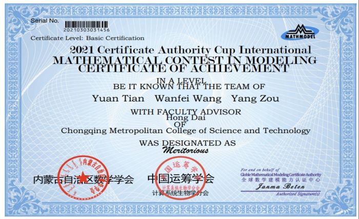 城科参赛队伍荣获2022年美国大学生数学建模竞赛(MCM/ICM)国际二等奖