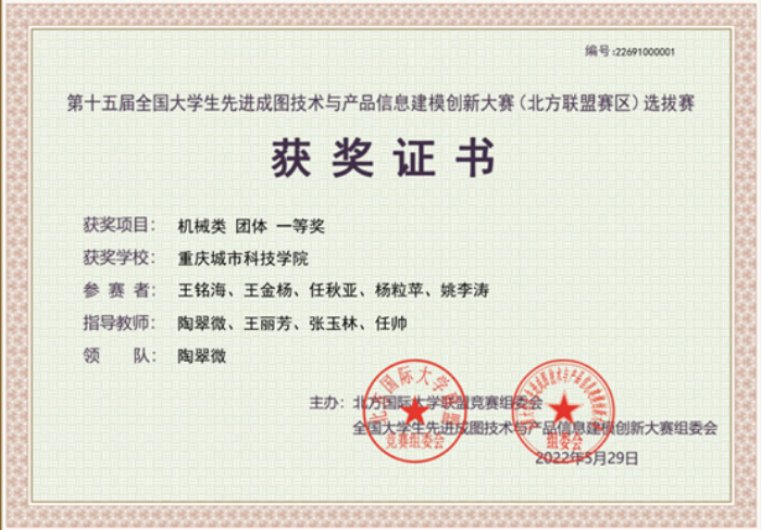 5月28日,我校学子在第十五届“高教杯”全国大学生先进成图技术与产品信息建模创新大赛喜获佳绩。
