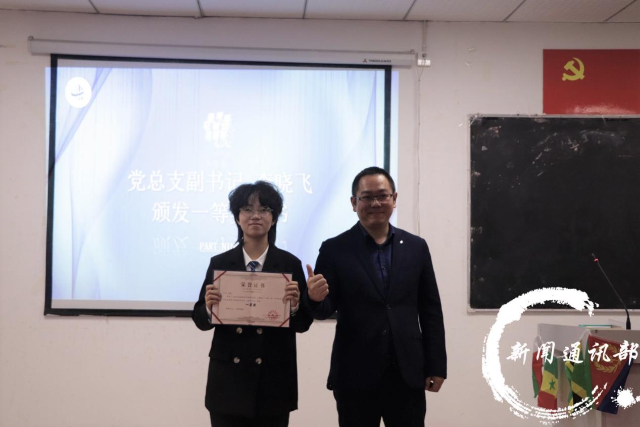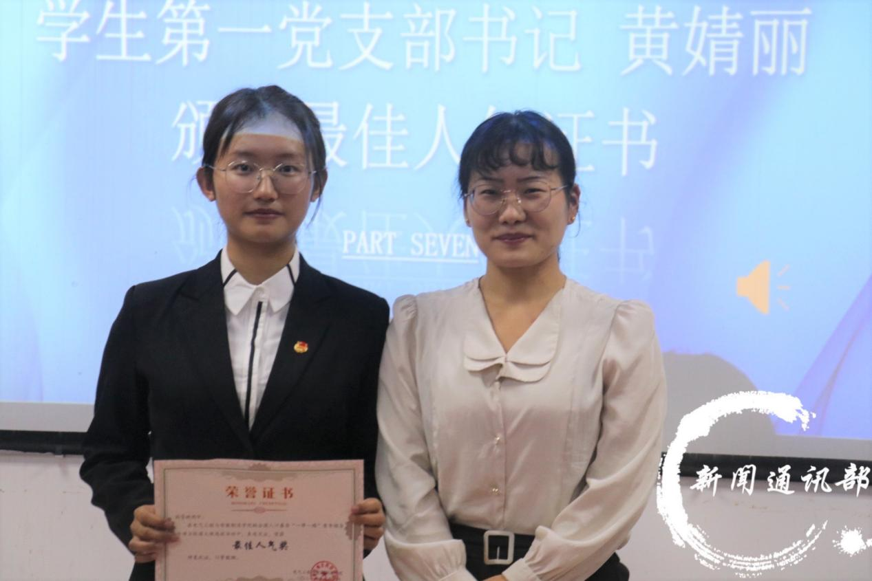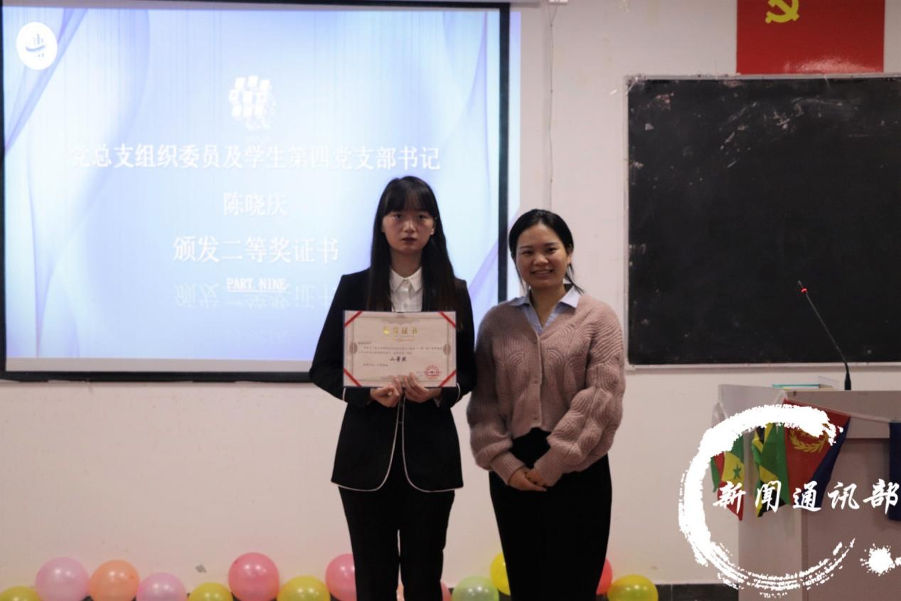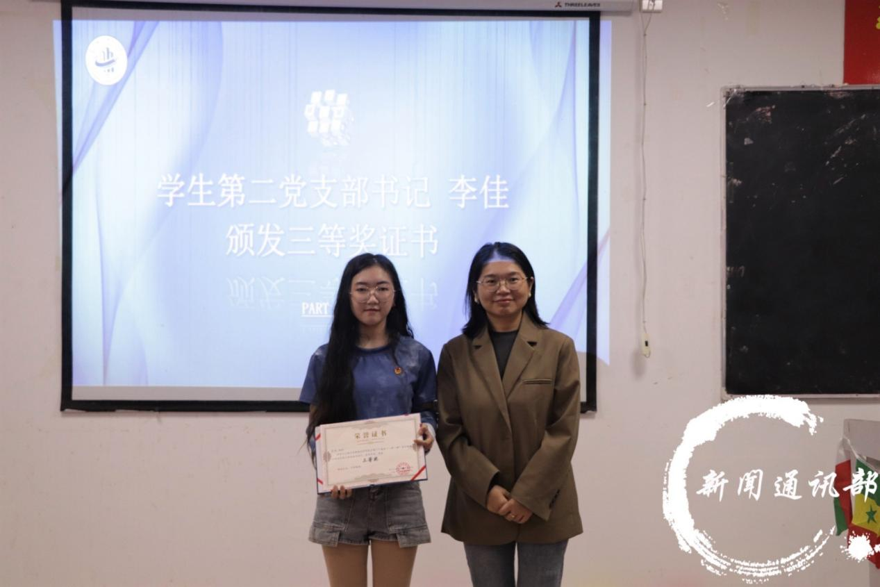 最终,万俐同学荣获一等奖,由李晓飞书记为其颁发荣誉证书;谭晰敏同学获得二等奖;詹靖同学获得三等奖;刘丁月同学获得优秀奖;冉雪娇同学获得人气奖。此次大赛大赛在掌声与祝贺声中落下帷幕。