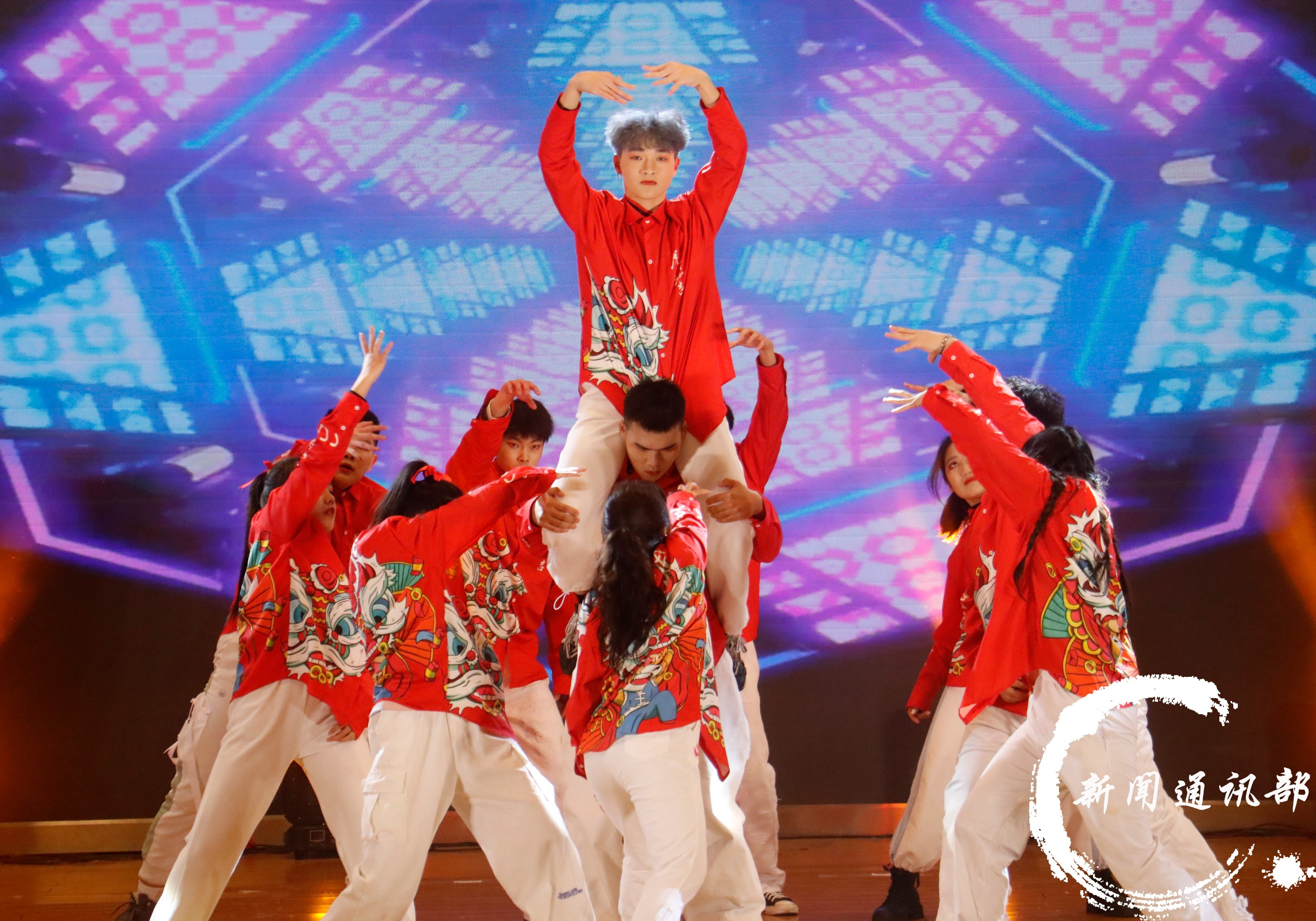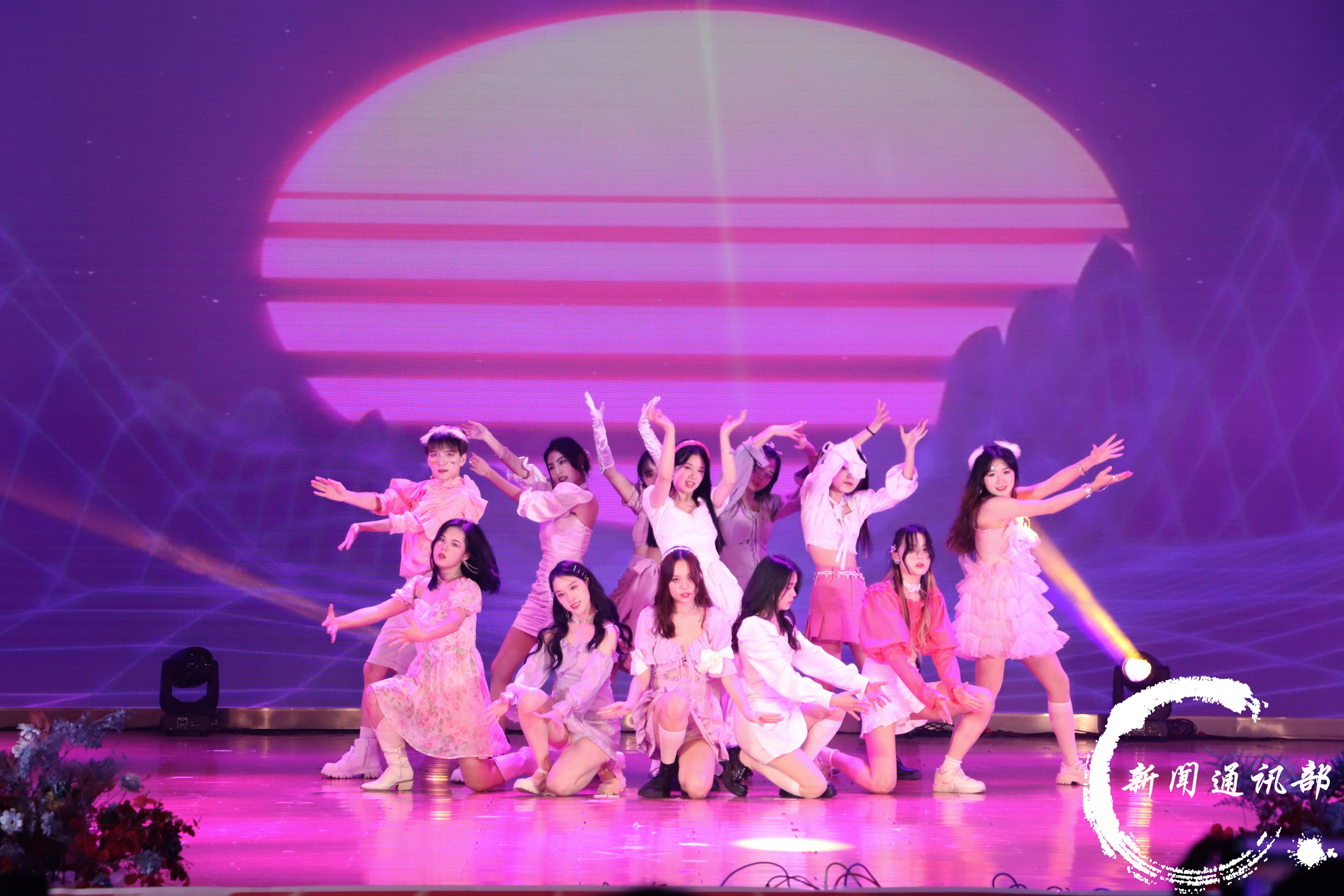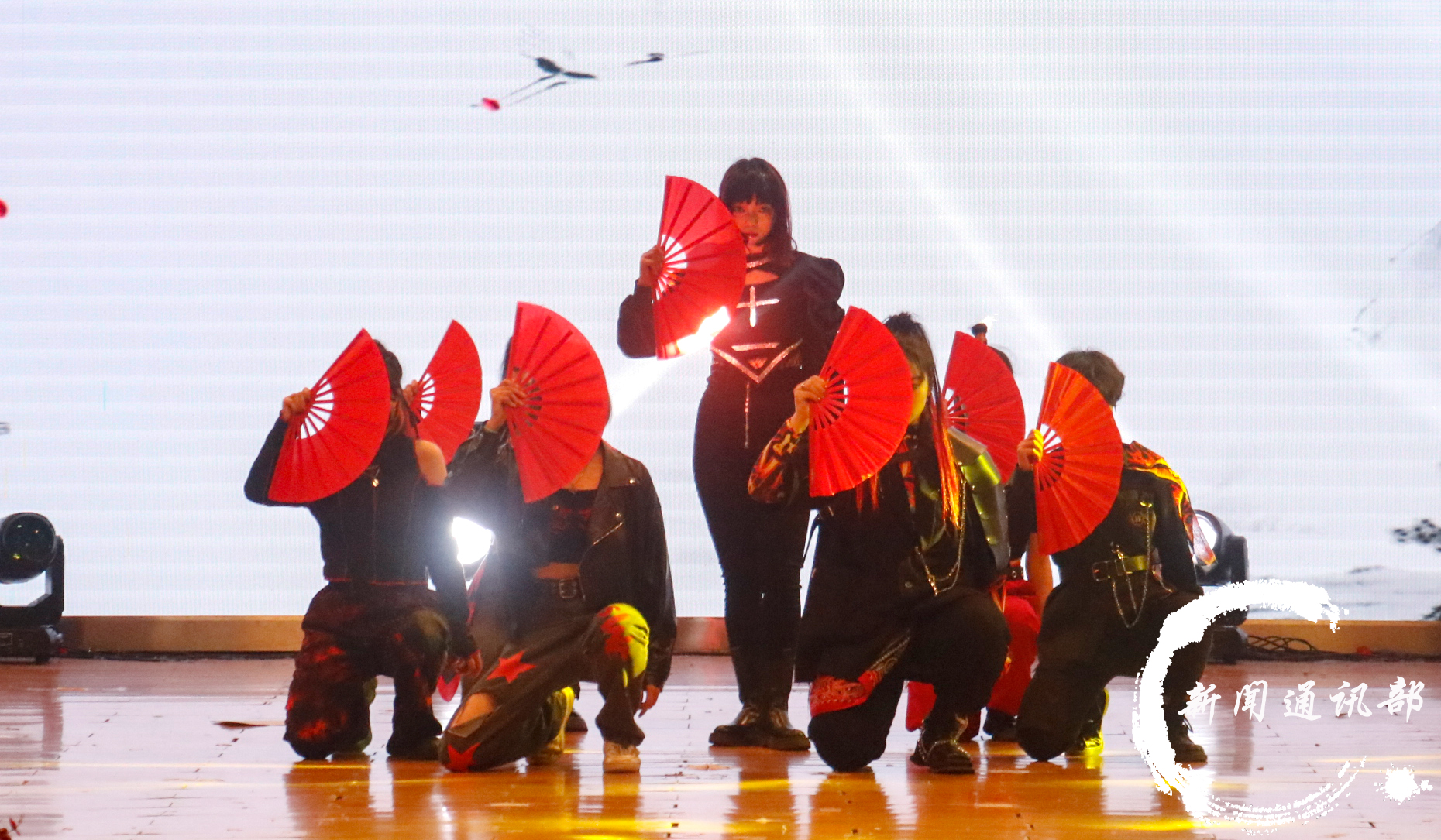 晚会的第二篇章“霜天晓角”,此篇章意在告诉人们珍惜时间,珍惜身边的人和景。小品《时间都去哪儿了》讲述了微博、微信、抖音轮番掌控我们的“时间”,用一些搞笑的时下流行梗来引人深思,兼具教育意义和创新意识。《青春不散场》以幕布剧独具特色的方式展现了从高考到大一生活的故事,彰显了学生们青春洋溢、活力四射的精神风貌。《揉碎夜的光》给我们带来了一场完美的视听盛宴,动听的歌声,柔美的舞蹈,让现场观众欢呼不断。最后,由M-story街舞社带来的《more》用激情的舞姿带我们进入赛博世界,不断刺激我们的感官,轰炸、揉碎、拼接引爆全场,欢呼声与炸裂的音乐融为一体。
