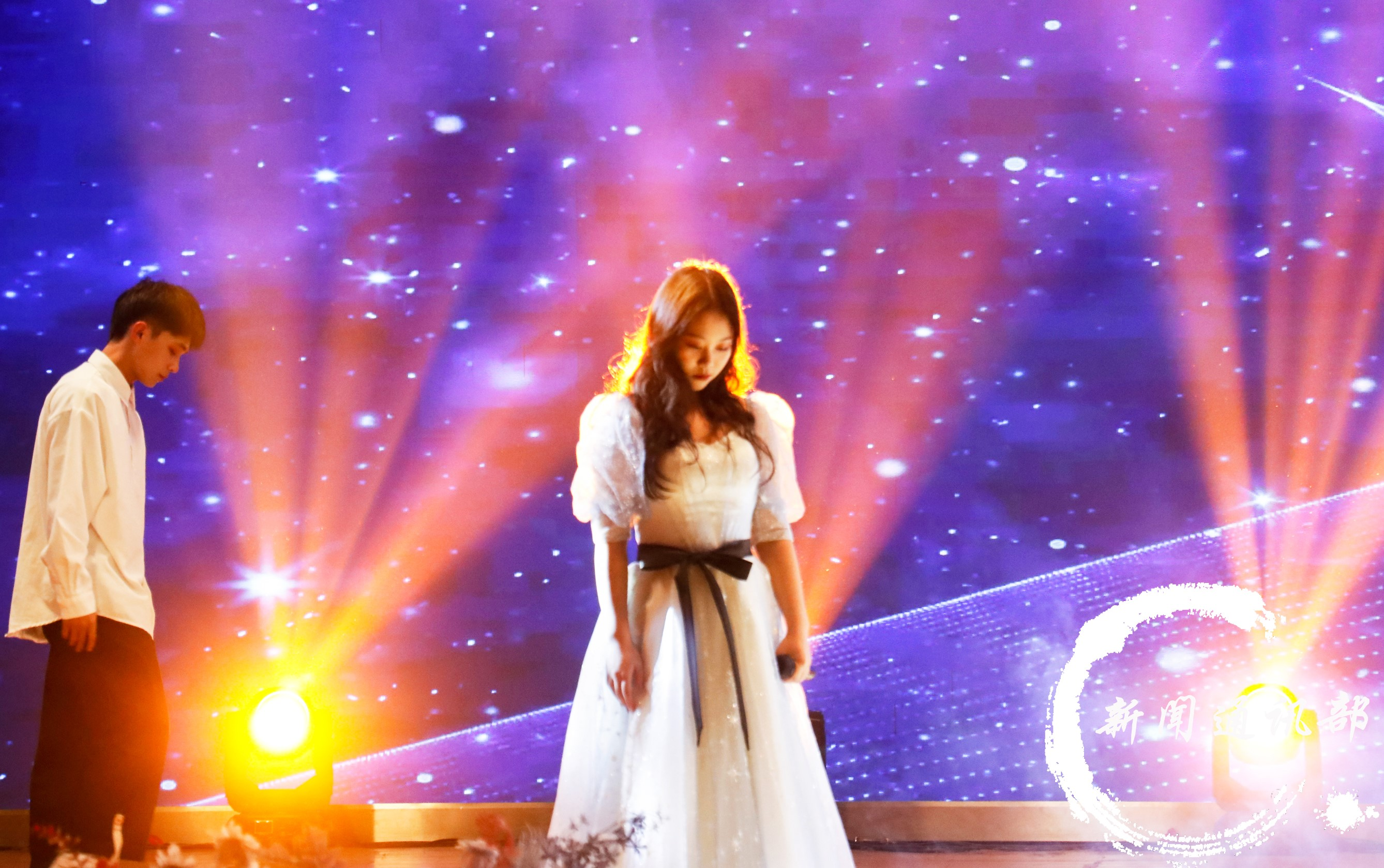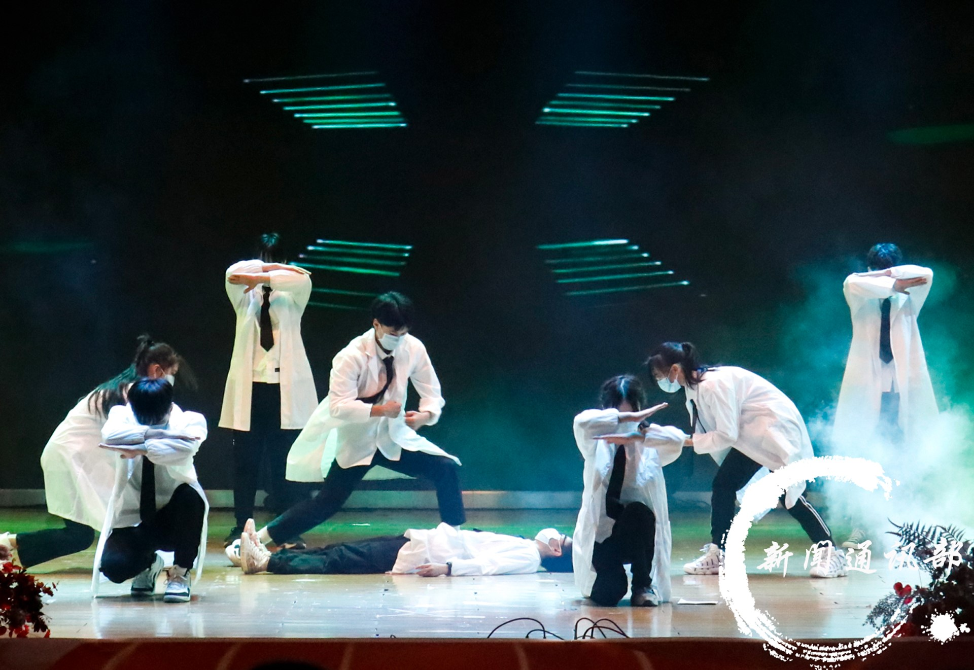 致辞结束后,在一片热烈的欢呼声中迎来了晚会的第一篇章“月上海棠”,此篇章意在歌颂疫情期间无畏付出的中华儿女。话剧《新冠茶话会》将观众引领进一个诙谐幽默的世界,回顾了新冠疫情期间国家和人民众志成城、团结一致的场景。舞蹈《救》凭借其激昂急促的曲调与迅速变幻的动作带动起观众火热的心,展现了医院急诊室抢救病人争分夺秒的一角。黑马组合《骁》将现场气氛推向高潮,整齐划一的齐舞,展扇舞扇的动作一气呵成,古风和流行并存,技巧和美感齐飞,赢得了观众一阵阵掌声。