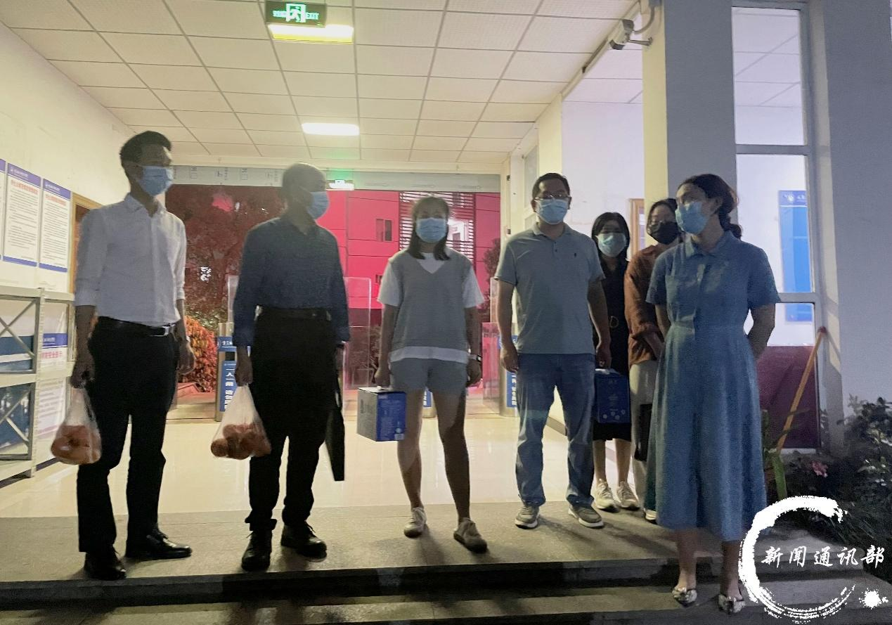 疫情当前,为及时了解处在健康管理期学生的思想动态和生活情况。 3月18日晚20:00,电气工程与智能制造学院领导陈进、李晓飞、张玉林及相关辅导员老师前往宿舍看望慰问处于健康管理期的学生,表达学院的关怀,传递组织的温暖。