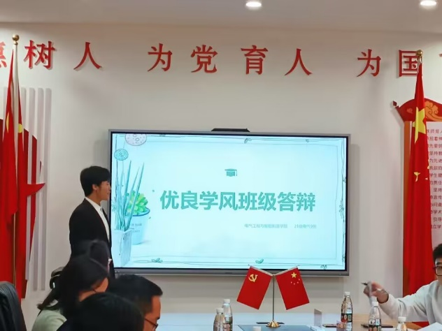 本次“重庆市普通高校先进班集体”评选答辩共分为班级汇报展示和评委提问两个环节。四个候选班级按照抽签顺序依次上台展示,通过PPT、短视频等形式展现班级在党团建设、班风建设、文明形象、日常工作、宿舍情况等方面的成绩,充分体现出班级团结友爱、积极向上、争创先进的精神风貌,营造了 “比、学、赶、帮、超”的良好氛围。随后,评委们结合各班具体情况提出了相关问题,与候选班级答辩代表进行了交流和互动。