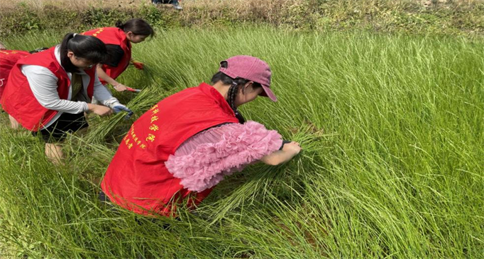 劳动最光荣,奋斗最青春。为让志愿服务真正深入田间地头,以实际行动助力乡村振兴,志愿者们分成四个小组前往不同的农户家中,用爱心劳动助力夏耕秋收。身穿“红马甲”的志愿者们分工协作、密切配合,在田地里穿梭忙碌,他们清除果梨种植地和稻田里的杂草、收割油菜籽、耕田地,并细心向农户们询问果梨的销售方法和销售业绩,大家都以饱满的热情投入到劳动中,现场一派热火朝天的繁忙景象。