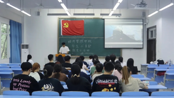 为进一步弘扬先烈爱国之情,缅怀英烈报国之志,切实提升学生党员的思想政治素质,激发其为实现中华民族伟大复兴的中国梦而奋斗的热情,9月24日,经济管理学院学生第二党支部于经管学院大楼405教室开展以“铭记历史,勿忘国耻;砥砺前行,振兴中华”为主题的党日活动。支部书记刘鑫渝、副书记陈楚乔及支部全体党员同志参加,本次会议由秦晓月同志主持。