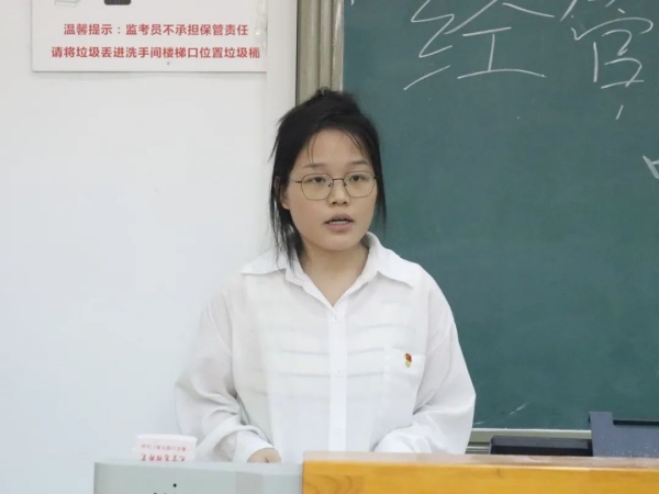 紧接着,预备党员代表陈雯靖同志上台发言。她首先对党组织的精心培育,以及入党培养人的深切关怀表达了由衷的感激之情。她表示,作为一名预备党员,应当不断加强自身学习,充分利用学校资源,积极参与各类政治学习和理论研讨,提升政治理论水平和业务能力,积极参与社会实践,锤炼动手能力,以实际行动践行党的宗旨和使命,同时自觉接受党组织的严格考核和持续监督,不断自我反省、自我完善,努力成为一名让党放心、让人民满意的优秀党员。