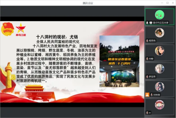 最后,尤钖同学以“中国式现代化扶贫首倡地——八洞村的现状”为主题进行了分享。她指出,十八洞村如今的发展成果,不仅是党和国家扶贫政策的有力见证,更是无数扶贫干部与当地村民齐心协力、共同奋斗的结晶。这一成功范例,激励着当代青年勇担时代使命,用知识和智慧为更多乡村发展注入活力,以青春之我,助力实现中华民族伟大复兴的中国梦。