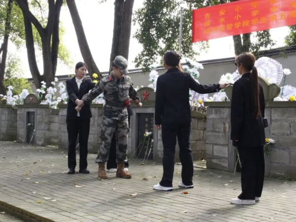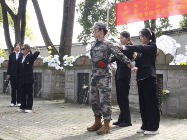 为缅怀先烈不朽功勋,传承红色精神血脉,筑牢青少年理想信念,4月2日,重庆城市科技学院经济管理学院学生第五党支部联合永川区五间镇盛水小学党支部、吉安小学党支部,组织师生党员、学生团员、少先队员等200余人,赴五间镇新建烈士陵园开展“缅怀革命先烈,传承红色基因”清明扫墓活动。通过实地瞻仰、跨代互动与庄严仪式,引导师生赓续红色血脉,凝聚奋进力量。