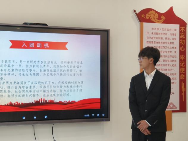 答辩会上,入团积极分子依次登台,围绕个人思想成长、学业表现、团史团务理论学习情况等展开详细汇报。各候选人结合自身实践,生动诠释了对“以青春行动践行团员责任,在服务集体中彰显青年担当”的深刻理解,展现了新时代青年在理论学习中淬炼思想、在社会实践中锤炼本领的成长历程。