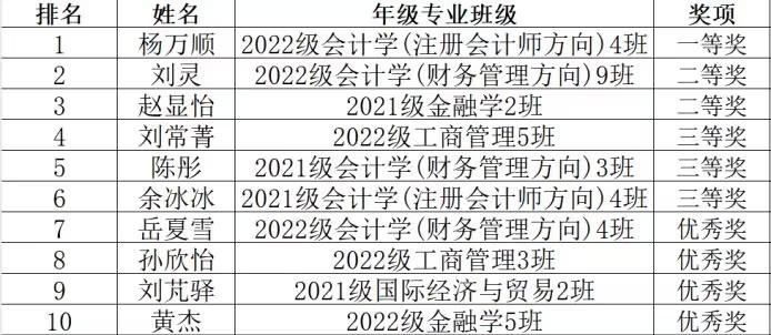 为深入学习宣传贯彻党的二十大精神,弘扬习近平总书记“人民至上、生命至上”的理念,提高学院师生的安全意识和防范能力,营造关注安全、支持安全、参与安全的良好氛围。经济管理学院党总支特此开展了“安全在我心,平安伴我行”安全教育知识竞赛主题活动。自活动举办以来,各支部积极组织、同学们踊跃参与。最终,现将评定结果公示如下:杨万顺同学获得一等奖;刘灵、赵显怡2位同学获得二等奖;刘常青、陈彤等3位同学获得三等奖;岳夏雪、孙欣怡等4位同学获得优秀奖。