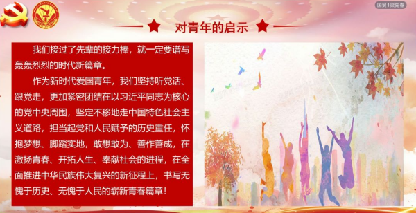 赓续英烈精神,吾辈砥砺前行。最后,骨干班指导老师文思未进行总结讲话。她指出,回顾党的百年奋斗历程,无数先烈以崇高的信仰和坚定的决心,为民族独立、人民解放和国家富强做出巨大牺牲,他们用行动书写气壮山河的历史篇章,照亮中华民族伟大复兴的光辉道路。作为新时代青年,我们应该珍惜党和社会对我们的培育与关怀,不断提升自身素质和能力,积极参加各项社会实践活动,为推动社会进步与发展作出贡献。