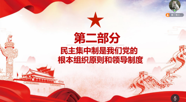 随后,宋海艳同志详细地介绍了党的根本组织原则和领导制度民主集中制。她谈到,要坚持科学决策,就必须充分发扬党内民主、集中全党智慧。各位党员同志们要带头贯彻执行民主集中制,参与党中央研究重大决策时要认真思考,充分发表意见;对工作中了解的真实情况,要及时客观全面反上来,不能只报喜、不报忧。对违反民主集中制的错误行为,要及时发现、坚决纠正。