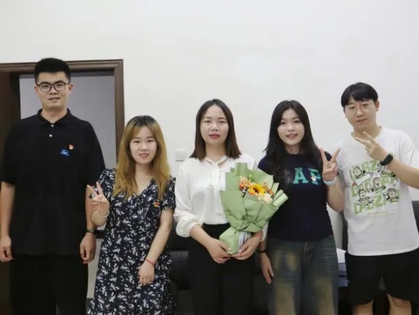 轻折别柳感师恩,情深相惜忆相逢。毕业生党员代表为学院老师们送上鲜花和祝福,几度相遇、行止今日盛夏;满心祝愿、师恩铭记于心,言语有尽,然感激之情无尽。在鲜花与欢笑声中,支部书记与副书记也为毕业生党员们准备了毕业礼物,每份礼物装满着老师们的衷心祝愿,每句问候承载对毕业生的美好期望,眼里是星辰大海,前路是万里坦途,愿毕业生党员未来前途似锦,书写更绚烂的人生篇章。