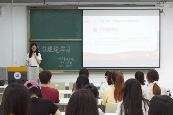 为深入学习贯彻习近平总书记在二十届中央政治局第十一次集体学习时系统阐述的新质生产力的科学内涵,6月18日中午,经济管理学院学生第五党支部于五教502教室开展六月政治理论学习。支部书记杨青、副书记蔡萍及支部全体党员同志参加,本次会议由谭丽丹同志主持。