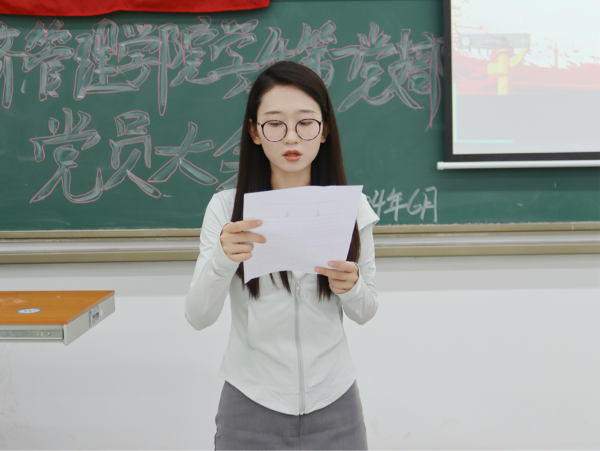 游婷婷等六名同志依次上台宣读转正申请书,从思想、学习、生活、志愿工作等方面向党组织汇报自己在预备期间的表现。各预备党员结合在预备期的基本情况,总结了自身的成长与不足,同时对未来发展方向进行规划。